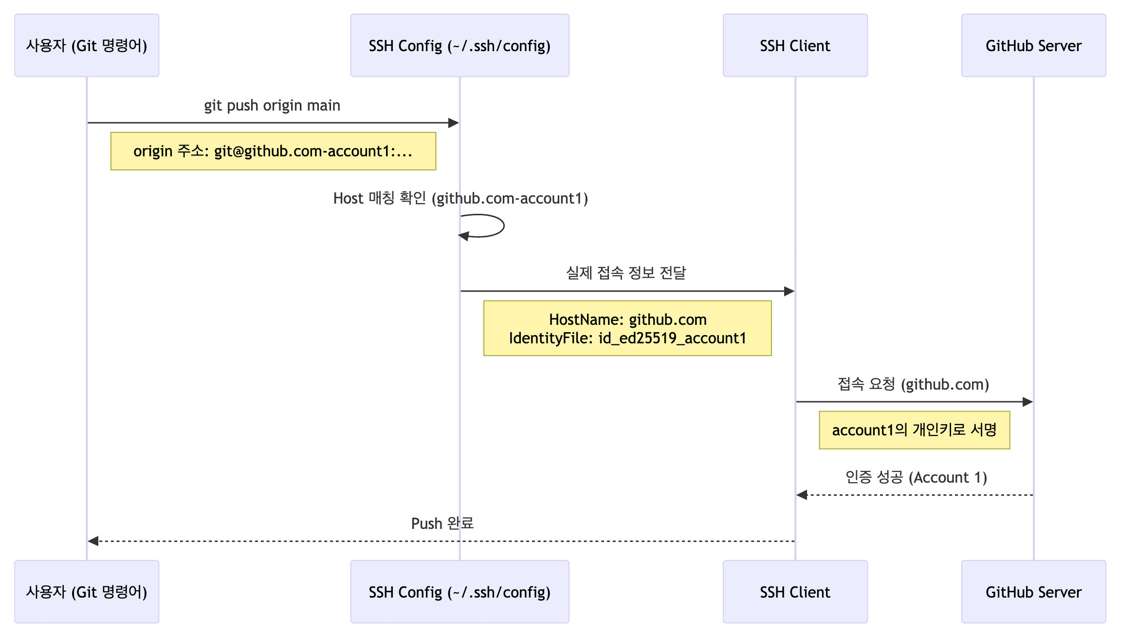 ~/.ssh/config파일의 경로 확인- GitHub 계정 설정에서 SSH 키 등록 여부 확인